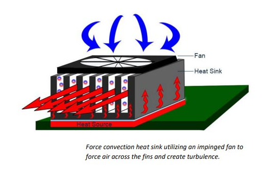 أخيرًا، يصنف المهندسون عادةً المشتتات الحرارية على أنها تحتوي على حمل حراري 'طبيعي' أو حمل حراري 'قسري'.تعمل أحواض الحرارة بالحمل الحراري الطبيعي (السلبي) على زيادة مساحة السطح وتوصيل الحرارة دون إضافة مكونات نشطة.تم تصميم مشعات الحمل القسري (النشيطة) لاستخدام مكونات مثل المراوح والمنافيخ لإجبار الهواء البارد عبر الزعانف، مما يؤدي إلى حدوث اضطراب وزيادة أداء تبريد المبرد.